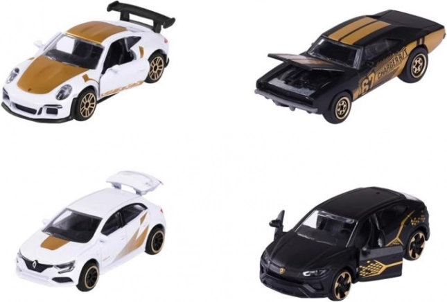 Dette alsidige sæt vil begejstre både små racerkørere og elskere af miniaturer. Metalbilerne på ca. 7,5 cm imponerer med realistiske former, iøjnefaldende farver og pålidelige hjul. De fire specialmodeller i limited edition giver enhver samling et særligt præg.
