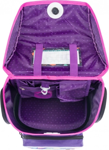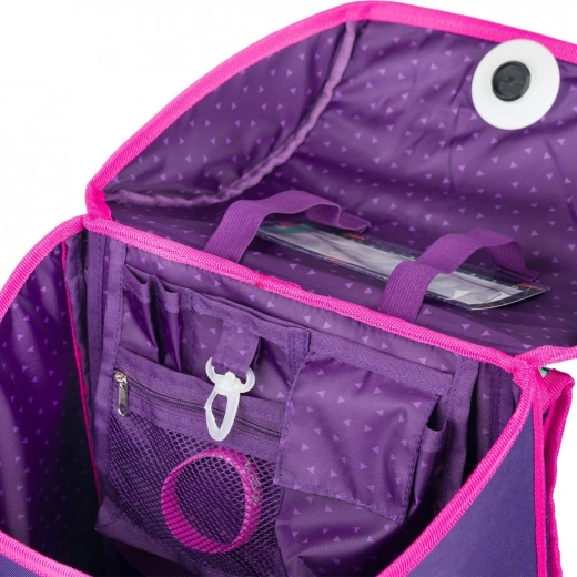 • På taskeflappen finder du en praktisk elastisk holder til penalhus, som altid sikrer hurtig adgang til skriveredskaber.