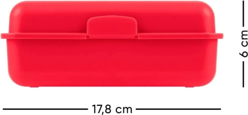 Hold din madpakke frisk og velorganiseret. Denne lette og robuste madkasse i en dyb rød farve med TERIBEAR-motiv er et fremragende valg til både børn og voksne. Takket være den pålidelige lås åbner boksen sig ikke under transport, og maden bliver, hvor den skal.