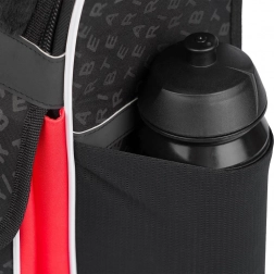 Det nye vippesystem til åbning gør det lettere at nå hæfter og bøger direkte fra bordet. Indvendigt finder du en organizer med elastik til jævn vægtfordeling og en gennemsigtig lomme med skema. De sidde netlommer rummer en drikkedunk, og den isolerede frontlomme med spænde passer til en lille snack eller småting.