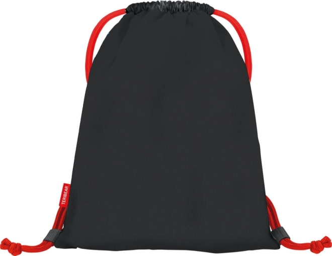 Den sorte pose er dekoreret med hvide TERIBEAR-bjørnemotiver – et stilfuldt tilbehør til skole og fritid.