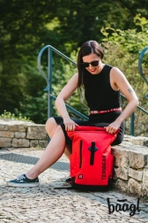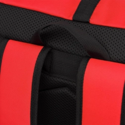 Den røde Teribear-rygsæk med roll-top kombinerer moderne design med funktionelle detaljer til behagelig hverdagsbrug. Det slidstærke, vandtætte materiale beskytter indholdet mod regn, mens den ergonomisk formede ryg og de justerbare skulderremme sørger for maksimal komfort.