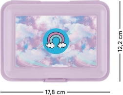 Den lilla frokostboks med himlen motiv er den perfekte ledsager til daglige behov ved pakning af frokoster. Det stilfulde design med sky- og regnbuemotiver gør boksen egnet til børn eller enhver, der værdsætter legende mønstre. Boksen er lavet af holdbar plast og tilbyder sikker lukning.