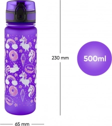 Flasken er dekoreret med charmerende enhjørninge-motiver, der vil glæde ethvert barn. Den kombinerer legende udseende med friske farver.