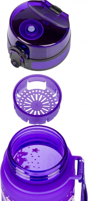 Nyd maksimal komfort og sikkerhed med denne drikkeflaske. Lavet af kvalitets tritan-materiale, som er lugtfri og fri for skadelige stoffer som BPA, PVC eller ftalater, er flasken også velegnet til varme drikke takket være det integrerede sier til frugtdrik eller te. Det praktiske låsbart låg forhindrer væskespild, mens remmen gør den nem at bære. Alt dette i et attraktivt design med farverigt enhjørningmotiv, der vil fange ethvert skolebarns opmærksomhed.