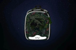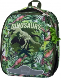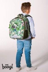 Skole rygsæk Baagl Dinosaurer er designet med en robust og forstærket krop, der beskytter skoleartikler som en beskyttende skal. Tokammer systemet sikrer optimal vægtfordeling, hvor frontkammeret indeholder en praktisk organisator, en lomme til småting og en karabinhage til nøgler.