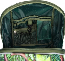 Den indvendige organisator hjælper med jævn vægtfordeling. Side lommer af stærkt net er ideelle til en drikkeflaske. Den faste bund holder formen og tillader rygsækken at stå selv.