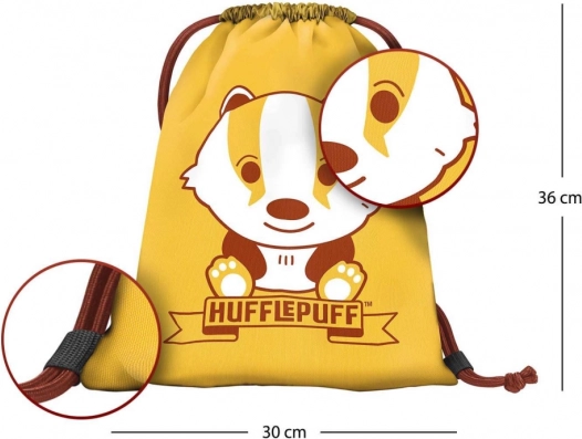 Sækken er udsmykket med det populære Hufflepuff-motiv fra Harry Potter-serien, som vil glæde alle fans.