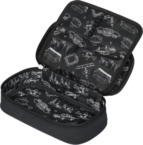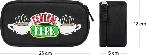 Dette sorte penalhus er ikke kun praktisk, men også et stilfuldt tilbehør for enhver fan af den legendariske serie Friends. Med Central Perk-logoet følger det dig hver skoledag. Fremstillet af kvalitets tekstilmateriale og med rigelig plads til alle dine skoleartikler.