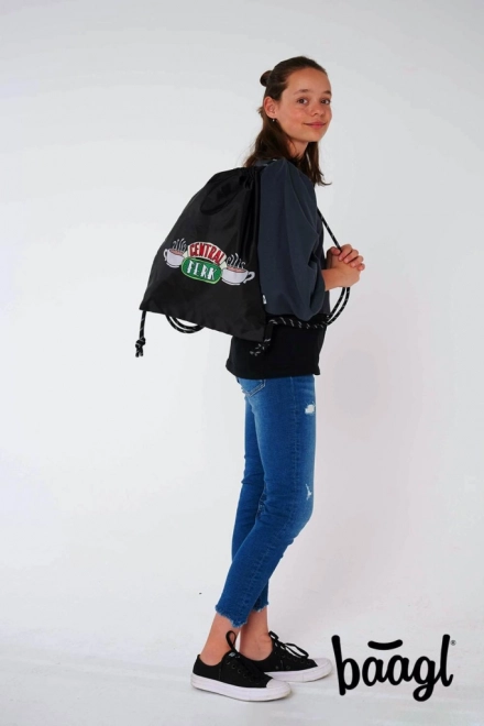 Elegant sort pose med “Central Perk”-logo er et godt valg for fans af serien Friends. Perfekt til at bære personlige ejendele.