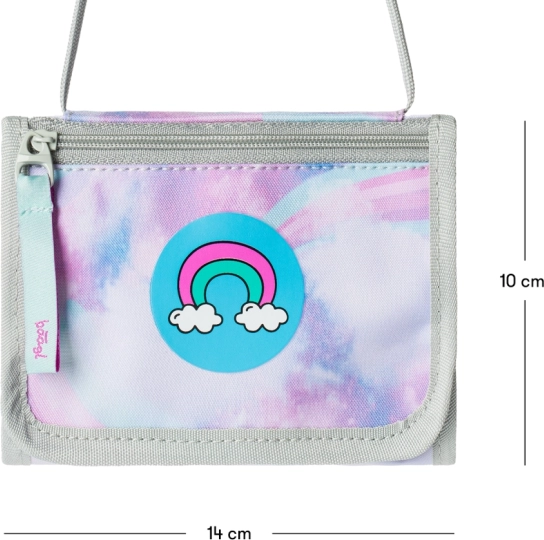 Den praktiske hals-pung fra Baagl med motivet "Himmel" er et ideelt valg for alle, der sætter pris på en kombination af funktionalitet og stil. Slidstærkt materiale, praktisk snor og lomme med lynlås gør den til en fremragende rejseledsager.