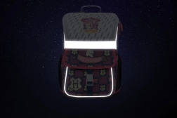 Det nye klap-op-system giver hurtig adgang til skoleudstyret direkte fra bordet. Indeni finder du en organizer til jævn vægtfordeling, en elastik til fastholdelse og en gennemsigtig lomme til skema.