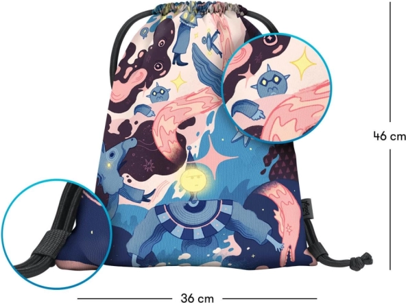 Takket være snørelukning med stærke snore kan posen hurtigt lukkes, og samtidig kan du bære den behageligt på ryggen som en rygsæk. Ideel til skole, fritidsaktiviteter, træning og udflugter.