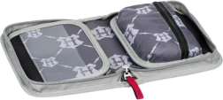 Udklappeligt åbnesystem for nem adgang direkte fra pulten, indvendig organizer med elastik, gennemsigtig lomme med skema og rummelige lommer inkl. isoleret frontlomme.
