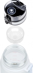 Let og robust flaske af certificeret tritan, der sørger for nem hydrering hele dagen. Takket være det smarte låg med lås slipper der ikke en dråbe ud, og flip-top mundstykket giver hurtig drikning med én hånd. Den integrerede si er perfekt til smagssat vand med frugt og til te – materialet er også egnet til varme drikke.
