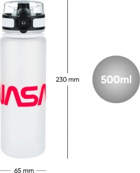 Stilfuld tritan drikkeflaske med NASA-logo og en kapacitet på 500 ml – ideel til skole, sport og rejser. Den har et låsbar, lækagesikkert låg, praktisk håndledsrem og et integreret si til frugt eller te. Sikker BPA-fri materialekvalitet uden lugt sikrer ren smag af drikken.