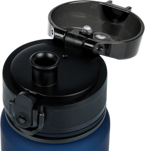 Flip-top låg med sikkerhedslås forhindrer utilsigtet åbning og beskytter mod lækager i rygsæk eller taske.