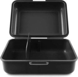 Tilbyder sikker lukning med en enkel lås, og tilstedeværelsen af et rumdelingssystem forhindrer blanding af fødevarer inde.