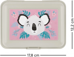 Stilfuld og praktisk madkasse med koalamotiv, ideel til børn. Sikker lukning med lås sikrer, at indholdet forbliver på sin plads.