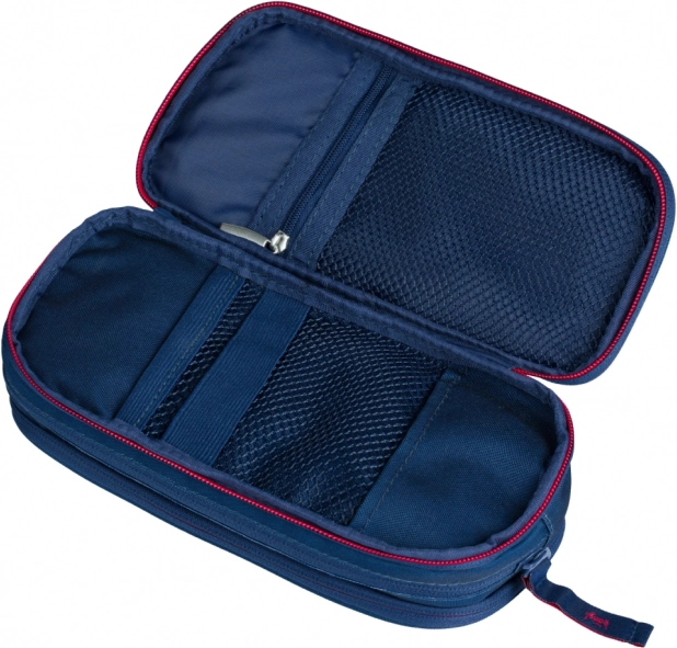 Penalhuset Baagl Etue Big Navy indeholder elastiske holdere og netlommer, som giver en overskuelig organisering af skriveartikler.