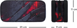 Penalhuset er udstyret med tre separat lukkede rum med lynlåse, hvilket sikrer sikker opbevaring af alle dine skoleartikler. Takket være det praktiske håndtag kan det let bæres eller hænges.
