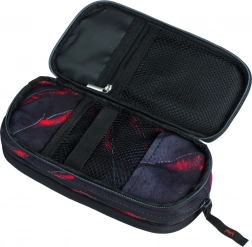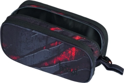 Unikt sort-rødt design i robust tekstilmateriale gør dette penalhus ikke kun praktisk, men også et moderne tilbehør.