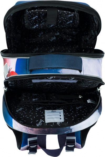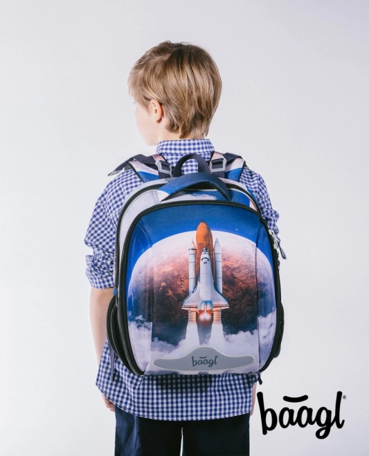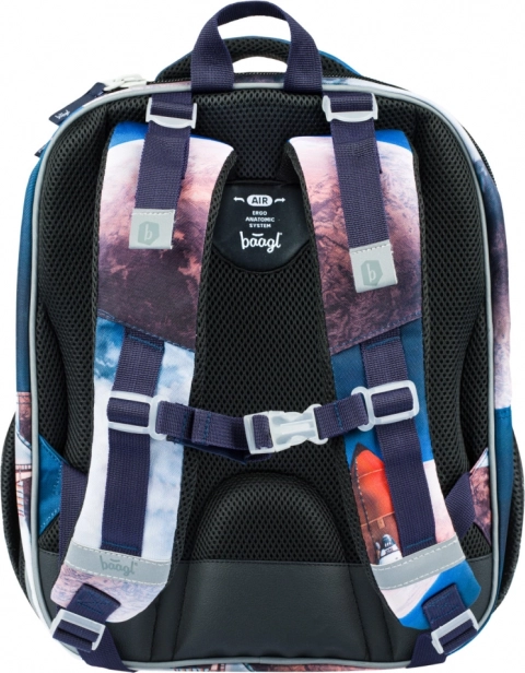 SHELLY-tasken med Space Shuttle-motiv kombinerer sundhedsvenlig ergonomi og en robust konstruktion. Rygsystemet AIR ERGO ADJUSTABLE SYSTEM tilpasser sig barnets krop, støtter korrekt kropsholdning og muliggør luftcirkulation langs rygsøjlen. Ergonomisk formet ryg og fuldt justerbare skulder- og bryststropper sikrer behagelig og sund bæring hele skoledagen.