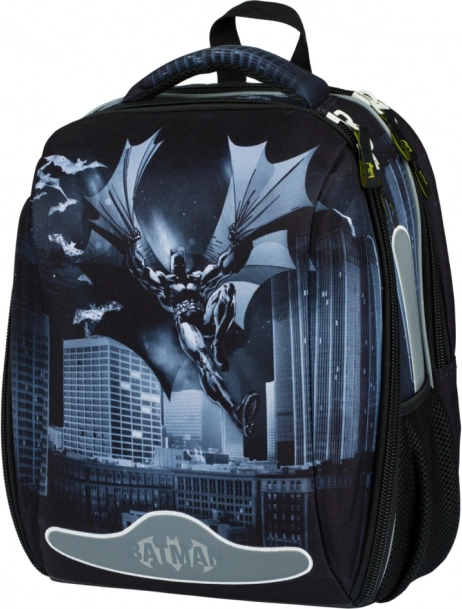 Skolemappen Baagl Shelly Batman Dark City er designet til komfortabel og sund bæring fra 1. klasse. Den faste konstruktion fungerer som et beskyttende “skjold”, der pålideligt beskytter alle skoleartikler. Ergonomisk formet ryg og fuldt justerbare skulder- og bryststropper sikrer perfekt tilpasning til kroppen og aflaster barnets ryg.