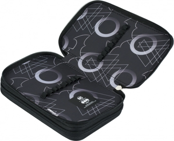 De indvendige elastikker er stærke og fleksible, så de sikkert holder selv kraftige trekantede farveblyanter, tuscher eller overstregningstuscher. Der medfølger også en lille lomme til mønter, viskelædere eller andre småting. Det slidstærke tekstilmateriale og de kvalitets lynlåse sikrer lang levetid, og det attraktive BATMAN-motiv glæder enhver fan.