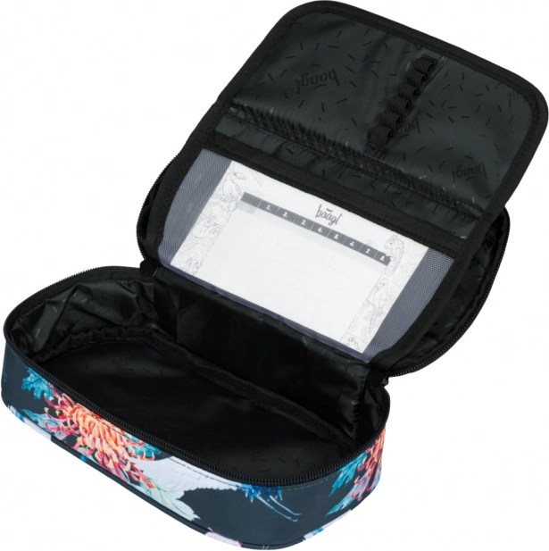 Hold styr på dine skoleartikler med BAAGL Birds penalhuset. Det robuste design, den praktiske inddeling og temaet med blomster og traner gør det til et perfekt valg til både skole og fritidsaktiviteter. Hovedrummet suppleres af en udklappelig skilleplade med elastikker til blyanter og penne, så alt bliver på sin plads.