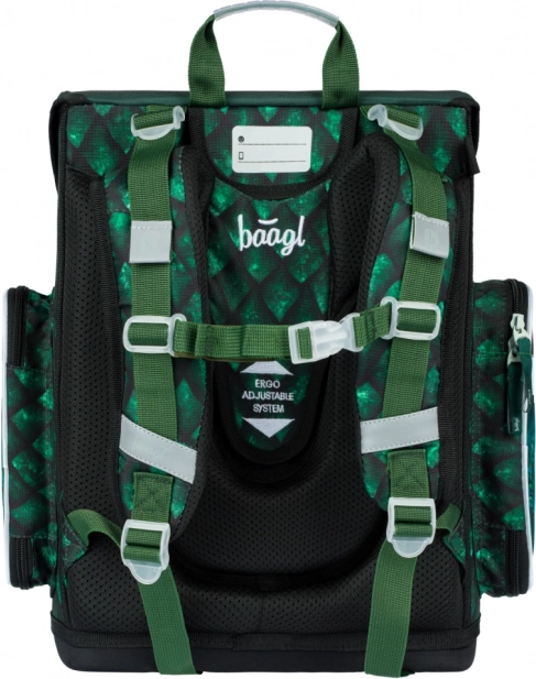 Skolemappen Baagl Ergo drage kombinerer komfort, sikkerhed og holdbarhed i et attraktivt dragedesign. Det justerbare ERGO ADJUSTABLE SYSTEM gør det muligt at tilpasse rygpanelet til barnets højde, og den ergonomisk formede ryg samt fuldt justerbare stropper sikrer sund og behagelig bæring hele skoledagen.