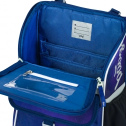 Den nye vippeåbning giver børn hurtig adgang til skoleudstyr direkte fra pulten. Indvendigt finder du en gennemsigtig lomme til skema og en gennemtænkt organiser med elastik til at fastholde hæfter og bøger. Sidelommer i stærkt net rummer en drikkedunk, mens den isolerede rummelige frontlomme med spænde beskytter madpakken.