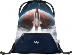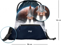 Posen til sko Space Shuttle er lavet af et solidt, vaskbart materiale, har en praktisk lynlåslomme og karabinhage til fastgørelse f.eks. på skoletasken. Den bæres komfortabelt på ryggen takket være stærke snore.