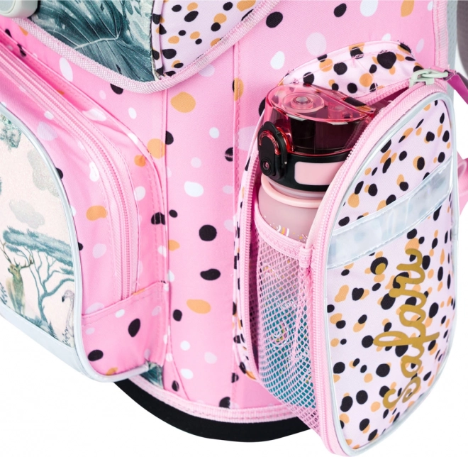 Skoletaske ERGO Safari er ideel til børn fra 1. klasse. Tasken er udstyret med et justerbart rygsystem, ERGO ADJUSTABLE SYSTEM, for optimal højdeindstilling i forhold til barnets højde. Ergonomisk formet ryg, justerbare skulder-, bryst- og sidekompressionsstropper hjælper med at tilpasse tasken til barnets krop.