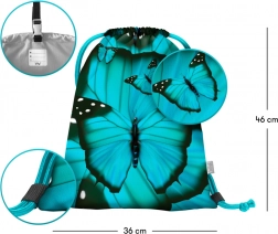 Din ideelle ledsager til fritidsaktiviteter! Denne skopose er ikke kun funktionel, men også moderigtig takket være sit farverige mønster med turkise sommerfugle.