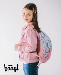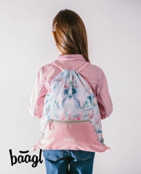 Praktisk skotaske med lomme fra mærket Baagl, ideel til fritidsaktiviteter. Lavet af stærkt vaskbart materiale, tilbyder snøring med stærke snore og praktisk lomme med lynlås.