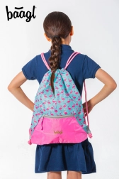 Stilfuld rygsækpose med flamingo tema fra BAAGL er ideel til at bære sko eller små genstande. Udstyret med en praktisk lynlåslomme og karabinhage til fastgørelse til tasken.