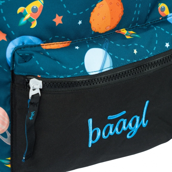 Det charmerende motiv med planeter og raketter vil børnene elske. Hovedrummet rummer både madpakken og yndlingslegetøjet, og den forreste lynlåslomme er ideel til småting, servietter eller nøgler.