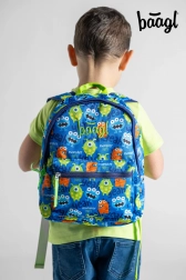 De glade “monster”-motiver i klare farver underholder børn og motiverer dem til selv at bære rygsækken i børnehave og på tur.