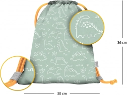 En stilfuld pose med DINOSAUR-motiv, som glæder børn i børnehave og til fritidsaktiviteter. Takket være det slidstærke og lette vedligeholdelsesmateriale tåler den daglig brug og beskytter indesko, sko og andre småting.