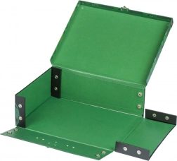 Stærkt lamineret papir, forstærkede hjørner og metalbeslag beskytter kufferten mod slitage selv ved daglig brug.