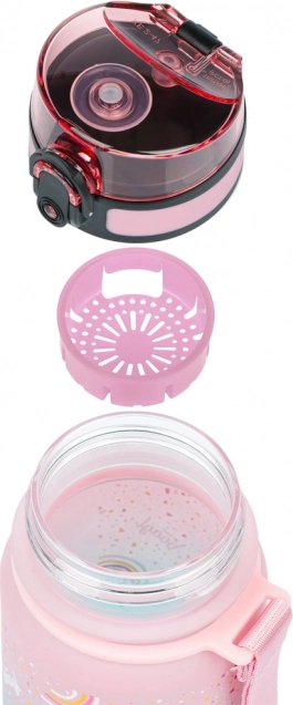 Det låsbare låg slipper ikke en dråbe ud og sikrer nem og intuitiv brug. Flasken inkluderer også et si-filter, så du kan bruge den til lemonade med frugt eller te (materialet egner sig også til varme drikke). Der er desuden fastgjort en rem til flasken for nem bæring i hånden.