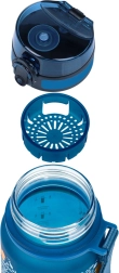 Medfølger et aftageligt filter, som gør det muligt at tilberede frugtlimonader og te. Volumenskalaen hjælper med at holde styr på væskeindtaget, og den praktiske strop sikrer nem transport. Ved at bruge en genanvendelig flaske reducerer du desuden plastaffald fra engangs-PET-flasker.