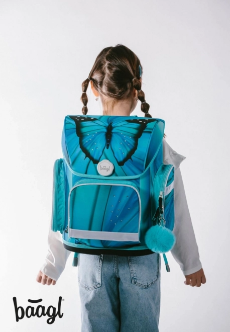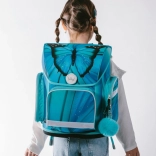 Penalhuset tilbyder en klassisk organisering med to flapper og en kvalitets lynlås. Posen med sommerfuglemotiv er fantastisk til hjemmesko eller andre småting og kan nemt fastgøres til rygsækken. Den praktiske madkasse er ideel til at opbevare frokost, mens beskyttende mapper til A4-notesblokke sikrer, at dokumenter forbliver intakte.