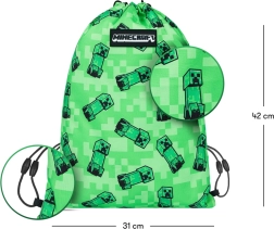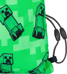 Denne Minecraft pose med unik pixeleret Creeper motiv er lavet af stærkt og vaskbart materiale, der sikrer lang levetid og nem vedligeholdelse. Takket være snøre kan posen bæres komfortabelt på ryggen.
