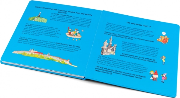 På bogens sidste sider venter enkle quizspørgsmål, der udvider børnenes viden om Prag.
