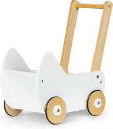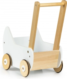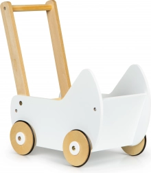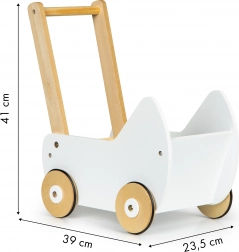 Trædukkevogn ECOTOYS tilbyder stor sjov for enhver lille pige, der elsker at passe sine dukker og tøjdyr. Vognen lader børnene lege mor og udvikler deres fantasi. De skridsikre gummibånd på hjulene beskytter gulvet mod ridser.