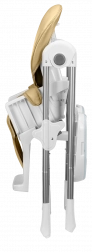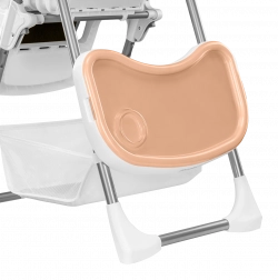 Sikkerheden sikres af fem-punkts seler, en forstærket konstruktion og skridsikre puder. Praktiske detaljer som aftagelig fodstøtte, stor kurv til legetøj og tilbehør samt hjul til flytning gør den nem i hverdagen. Når måltidet er slut, kan stolen foldes sammen på få sekunder til en pladsbesparende bredde på cirka 30 cm.