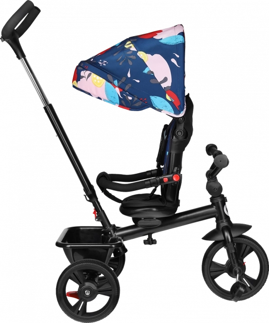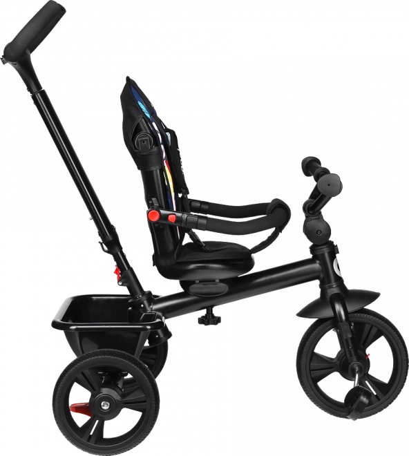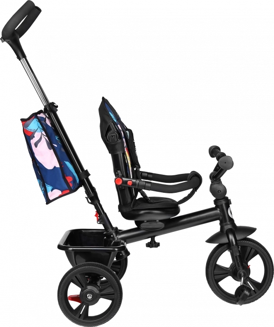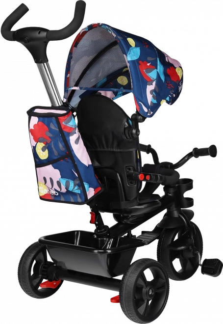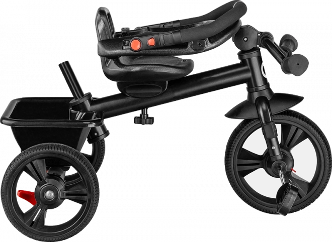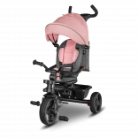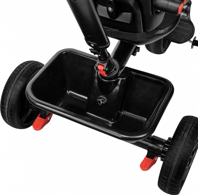 For maksimal sikkerhed er trekvognen udstyret med 3-punkts seler, bøjle til barnet, refleksdetaljer og dobbelt bremse på de bageste hjul. Forældre vil sætte pris på det højdejusterbare håndtag, nem foldning til kompakt størrelse og det praktiske tilbehør – kurv, taske og flaskeholder.