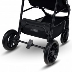 Vognen er tænkt til både forældre og detaljer: hurtig sammenklapning med lås for sikker transport, stor indkøbskurv, håndtag i øko-læder for et behageligt greb samt praktisk tilbehør som en myggenet skjult i fodstøtten og en kopholder. Reflekselementer øger synligheden i skumringen, og 5-punkts seler med to højdeindstillinger sikrer sikker fastspænding af det voksende barn.